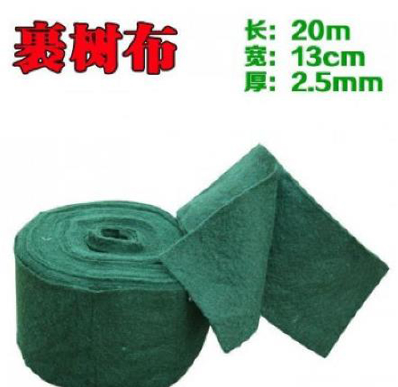 裹樹布滌綸短絲纖維面料織造而成,厚度為2mm~5mm,表面可覆蓋可降解薄膜,具有透氣性強(qiáng),吸濕性好,保暖性好等很多優(yōu)點(diǎn)。可降解綠色纖維樹木養(yǎng)護(hù)帶,在生產(chǎn)過(guò)程中不加任何粘結(jié)劑,固化劑等有毒有害化工原料,且能夠在自然環(huán)境下完全分解,對(duì)保護(hù)環(huán)境有積極的作用。